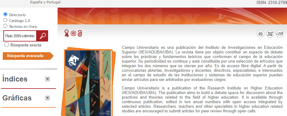 La revista Campo Universitario ya se encuentra en Latindex Catálogo By Secretaria IIESSin categoría Ya está disponible el cuarto número de Campo Universitario By Secretaria IIESSin categoría Ricci y Gorban presentaron el curso sobre soberanía alimentaria By prensaSin categoría Jornada sobre accesibilidad By Secretaria IIESSin categoría Paginación de entradas Anteriores 1 … 6 7 8 … 10 Siguientes